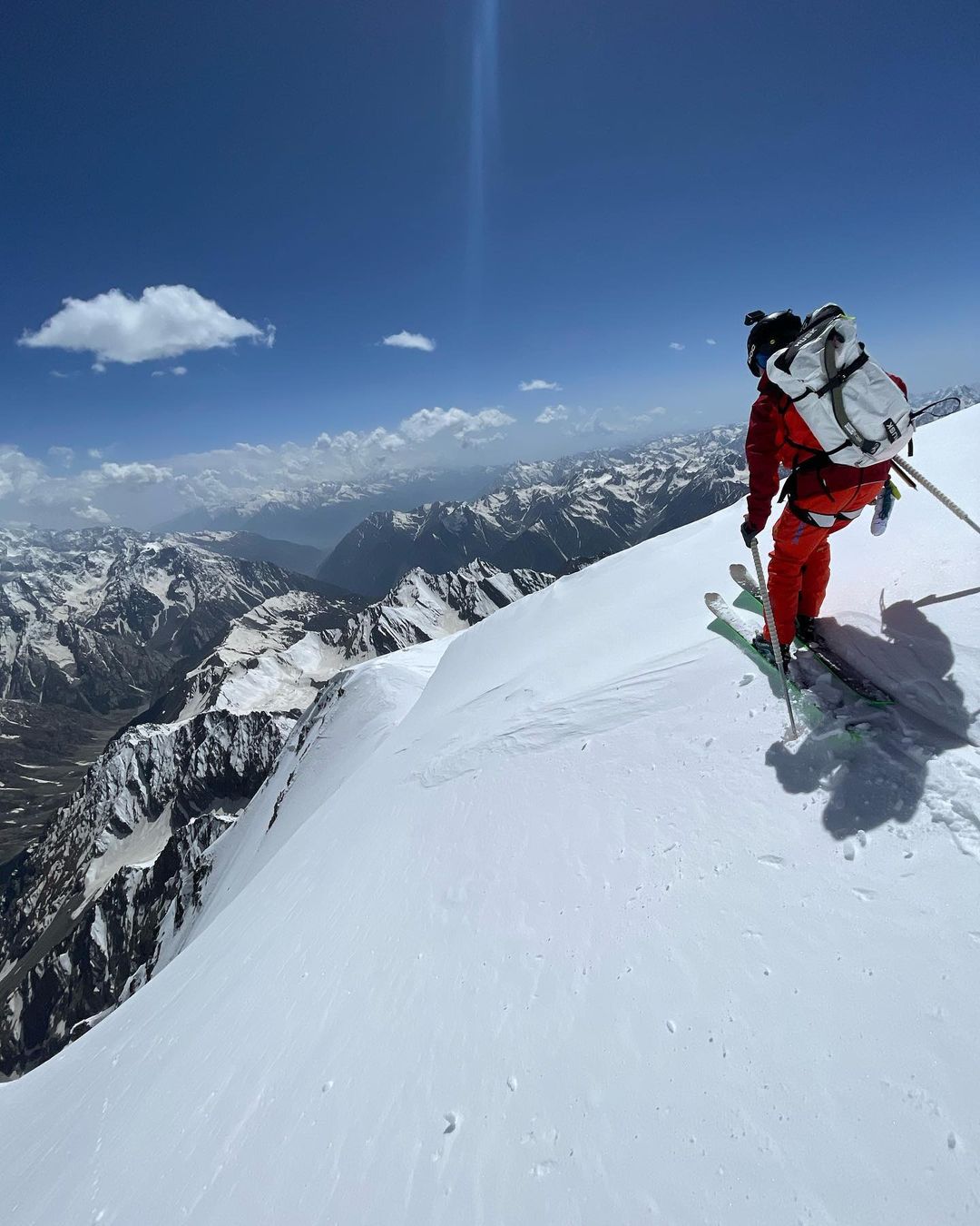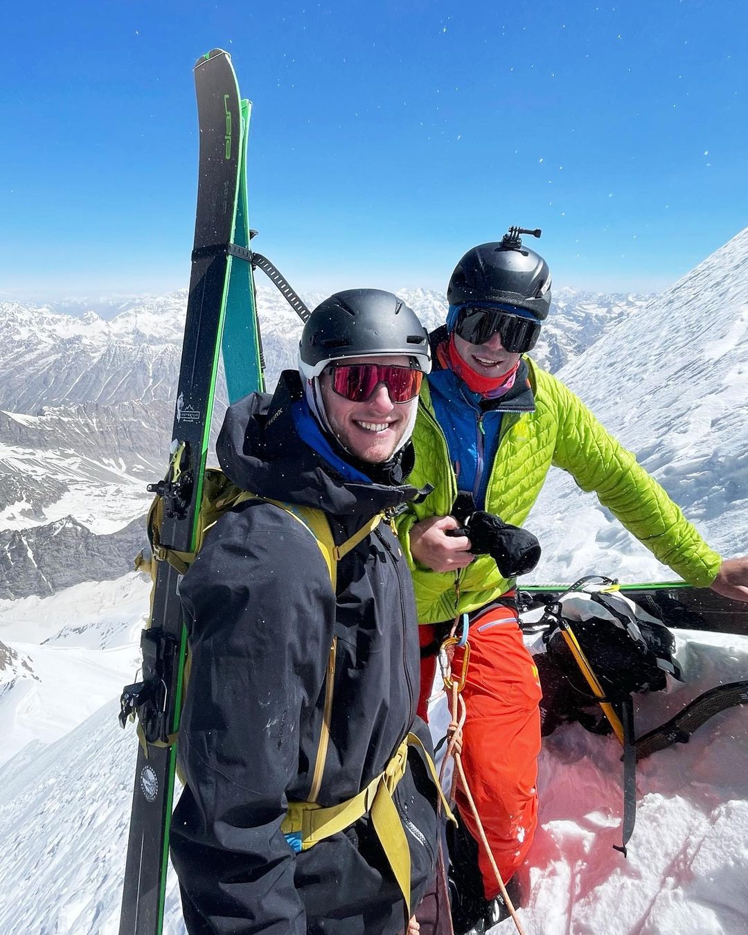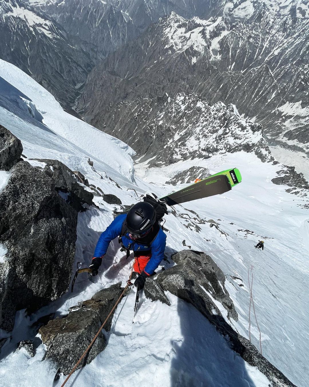 Avevamo in mente la nord, per poi fare ritorno in qualche modo verso il colle ovest, dove avevamo piazzato un campo base avanzato. Alla fine, dopo aver raggiunto la vetta, abbiamo valutato che le condizioni non sarebbero state ottimali e avremmo rischiato di trovarci bloccati in parete in un luogo remoto, dove non esiste un sistema organizzato di soccorso come potrebbe essere il PGHM di Chamonix. Quando sei su queste montagne cambi completamente approccio… Si, esatto. Qui ho sperimentato per la prima volta quanto l’approccio possa essere diverso da quello che si mette in atto sulle montagne di casa. Sciare a Chamonix è bellissimo, ma qui in Pakistan è molto più affascinante e speciale. Ogni decisione che prendi deve essere ponderata perché le conseguenze potrebbero essere molto più difficili da gestire.