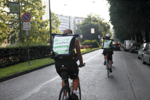 Un’idea, come già detto, nata dall’incontro di tre amici “di pedale”. Si inizia con Roberto Peia, 54 anni, giornalista professionista, dalla mountain bike alla bici da corsa e a quella a scatto fisso: le ama tutte e tre. Ed è convinto che, soprattutto in una grande metropoli, la bicicletta non sia solo il miglior mezzo di trasporto, ma un fantastico mezzo di comunicazione. E poi Andrea Vulpio, 27 anni, cuoco con la passione delle due ruote e della fotografia. Conclusi con successo gli studi, dopo aver lavorato per otto anni nelle cucine dei ristoranti milanesi decide di lasciare un segno nella sua città. Deciso, mirato ma sopratutto ecologico. Cercando collaboratori per il suo progetto, trova altri folli sognatori con in testa una Milano a misura di bicicletta. Infine Luca Pietra, 26 anni, neolaureato in ingegneria energetica, tornato da poco a Milano dopo tre anni di studi in Svezia tra Uppsala e Stoccolma, dove scopre i bike messengers; decide di importare l’idea, per dare un contributo concreto al miglioramento del traffico e della qualità dell’aria in una città che per anni ha vissuto quotidianamente, con passiva sofferenza, da ciclista.