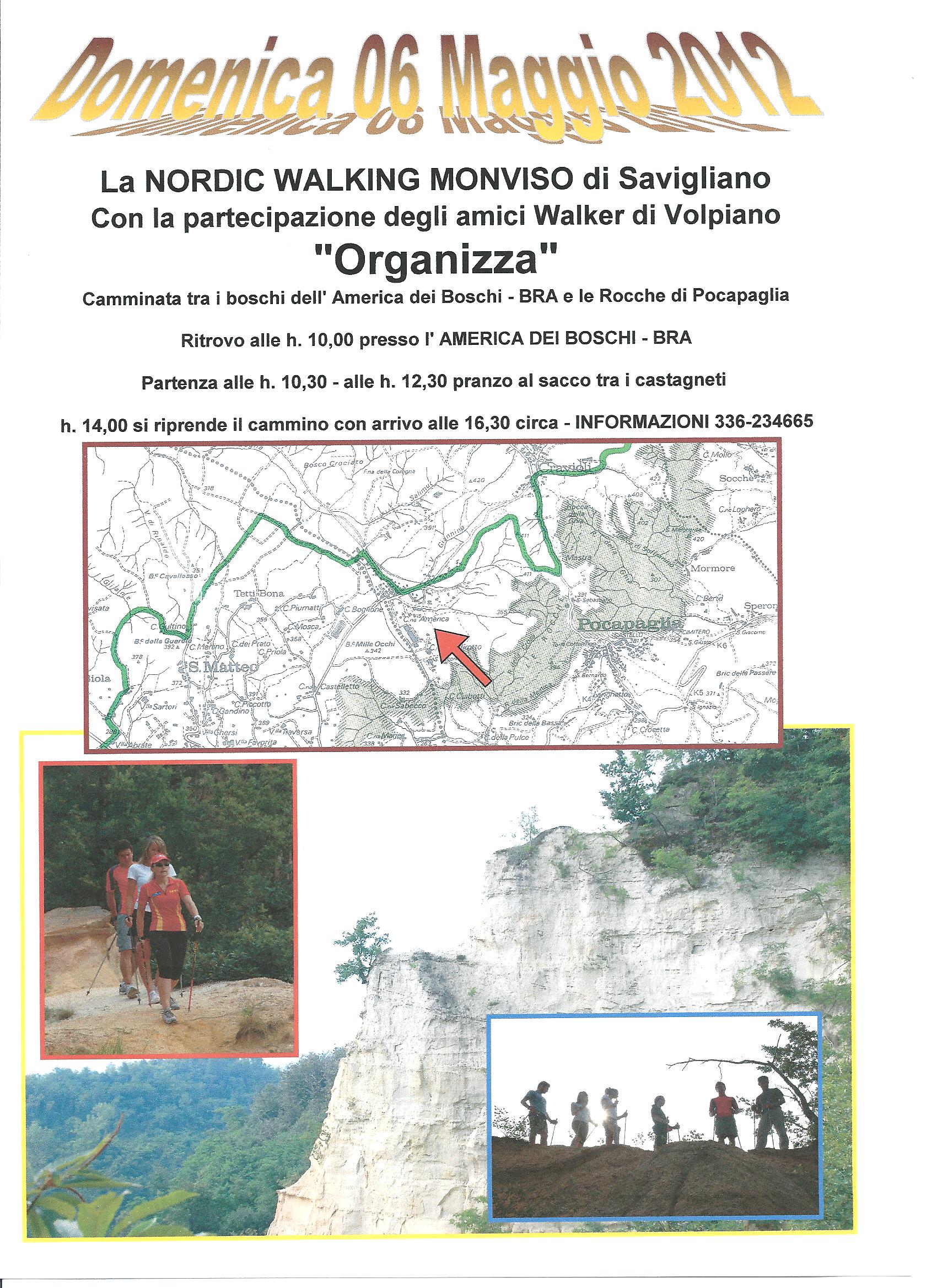 In collaborazione con il Nordic Walking Monviso il 6 maggio 2012, con partenza da Piazza Madonna delle Grazie dalle ore 8:30, si terrà la Camminata nell’America dei Boschi e le Rocche di Pocapaglia (CN).