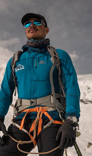 Andrea Lanfri inizia la scalata di Punta Hiunchuli (7.246 m)