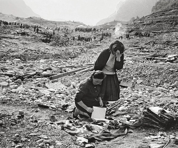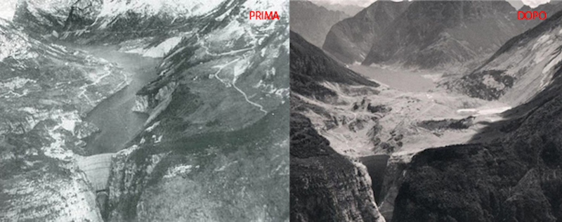Il disastro del Vajont si verificò la sera del 9 ottobre 1963, alle 22,39, nel neo-bacino idroelettrico artificiale del torrente Vajont, al confine tra Friuli-Venezia Giulia e Veneto. Una frana di 260 milioni di metri cubi di roccia e fango, precipitò dal soprastante pendio del Monte Toc nelle acque del bacino alpino realizzato con l’omonima diga; la conseguente tracimazione dell’acqua contenuta nell’invaso, con effetto di dilavamento delle sponde del lago, coinvolse prima Erto e Casso (paesi vicini alla riva del bacino), mentre il superamento della diga da parte dell’onda di 250 metri d’altezza provocò l’inondazione e distruzione degli abitati del fondovalle, tra cui Longarone, e la morte di 1.910 persone, tra cui 487 minorenni.