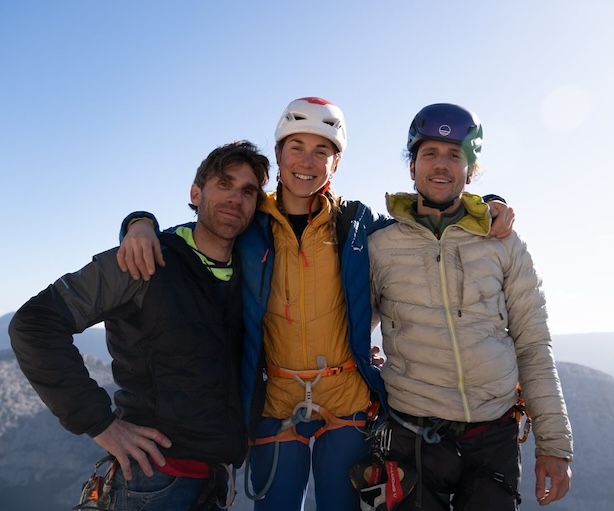 Federica Mingolla con Michele Amadio e Andrea Migliano nel Supramonte di Oliena, Sardegna, gennaio 2024. ©The Vertical Eye. Fonte facebook Mingolla