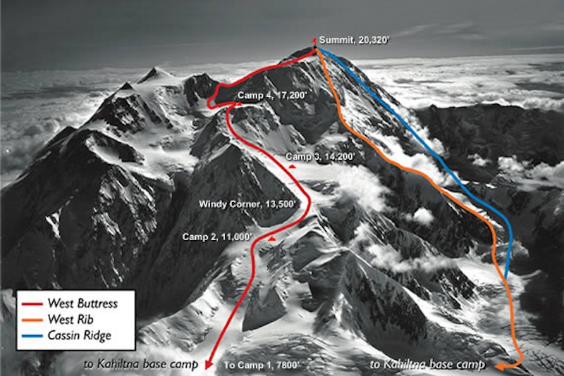 Nei piani dei due c’è la salita della West Buttress, via aperta nel 1951 da Bradford Washburn che rappresenta oggi il più noto e frequentato itinerario di salita. Questo per la sua relativa “sicurezza”, essendo l’itinerario meno soggetto al rischio valanghe e crepacci.