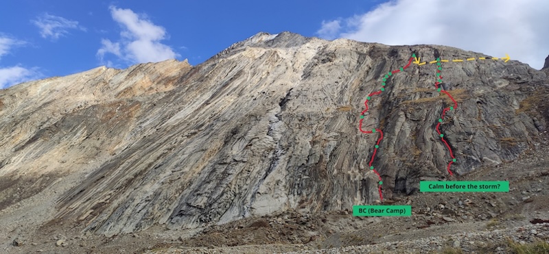 BC (Bear Camp) e Calm Before the Storm? aperte da Ana Baumgartner e Urša Kešar sulla parete nord della vetta ancora senza nome di 5332 m ©Urša Kešar