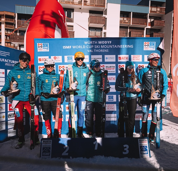 Domenica 26 novembre, Emily Harrop e Thibault Anselmet hanno deliziato il pubblico della Val Thorens conquistando la prima vittoria della stagione nella staffetta mista di Coppa del Mondo ISMF 2023/24, dopo una dura battaglia con il Team Spagna, formato da Oriol Cardona e Ana Alonso, che ha tagliato il traguardo al secondo posto. Giulia Murada e Nicolò Canclini hanno regalato all’Italia la medaglia di bronzo.