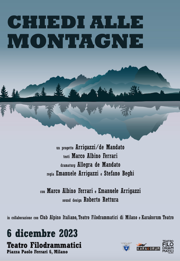 Mercoledì 6 dicembre 2023, alle ore 20.30, il Teatro Filodrammatici di Milano, in collaborazione con il Club alpino italiano, ospita “Chiedi alle montagne”, una lezione-spettacolo a due voci con Marco Albino Ferrari, uno degli autori più attivi e conosciuti nel dibattito pubblico sul futuro delle terre alte, e l’attore Emanuele Arrigazzi. Lo spettacolo verrà poi replicato presso lo Spazio Yak di Varese il 15 e il 16 dicembre 2023 alle ore 21.00.