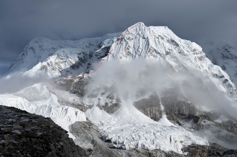 La via è all’incirca la stessa linea tracciata da Mingma Dorchi Sherpa due anni fa, tentata prima ancora dai giapponesi nel 1982, dagli italiani e dagli americani nel 1983, dai coreani nel 1989 e dai russi nel 1990.