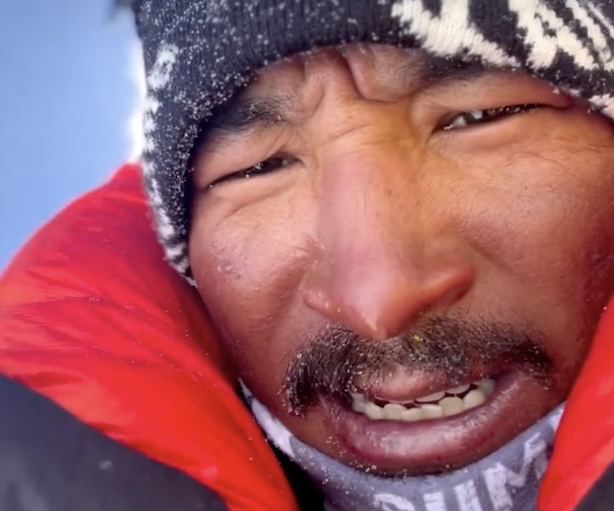 Geljen Sherpa durante il tentativo sulla Sud del Cho Oyu, autunno 2022. Fonte video/facebook
