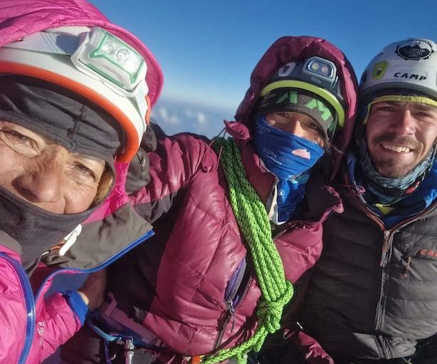 Mayte Vasquez, Rosa Morotti, Daniele Assolari sull’Illampu. Foto @mormar.rosa).