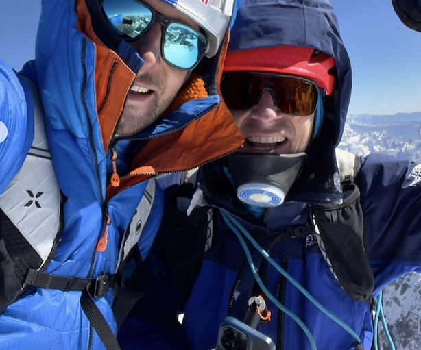 “Gli ultimi 15 metri fino in cresta sono stati di nuovo difficili e abbiamo dovuto lottare con la neve zuccherina. Sulla cresta mi aspettavo forti raffiche di vento, ma non è stato così. Ancora una volta siamo stati fortunati. Abbiamo fatto gli ultimi passi verso la cima e ci siamo stretti la mano. Che momento meraviglioso essere lì in piedi! In lontananza si vedeva lo Shisha Pangma (8027 m), e a sinistra il Langtang Lirung.”