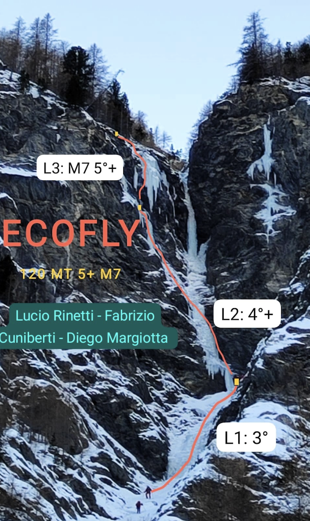 Prima salita di Ecofly (WI5+, M7), in Valle Argentera da Fabrizio Cuniberti, Diego Margiotta e Lucio Rinetti ©Lucio Rinetti
