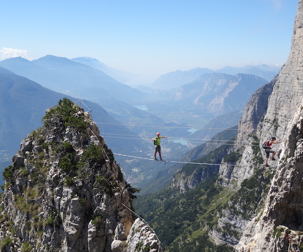 Un ambiente montano avvolto nel silenzio che dona serenità e adrenalina al tempo stesso. Un tempio per gli amanti delle ferrate che qui hanno pane per i loro denti, affrontando la via normale, uscendo lungo lo “Spigolo del vento”, oppure continuando verso il “Volo dell’aquila”, la recente variante d’uscita per i più esperti. Questa magnifica ferrata è stata denominata “delle aquile” in quanto la vista è spettacolare, spaziando dalla Valle dell’Adige fino al Lago di Garda attraverso la Valle dei Laghi.