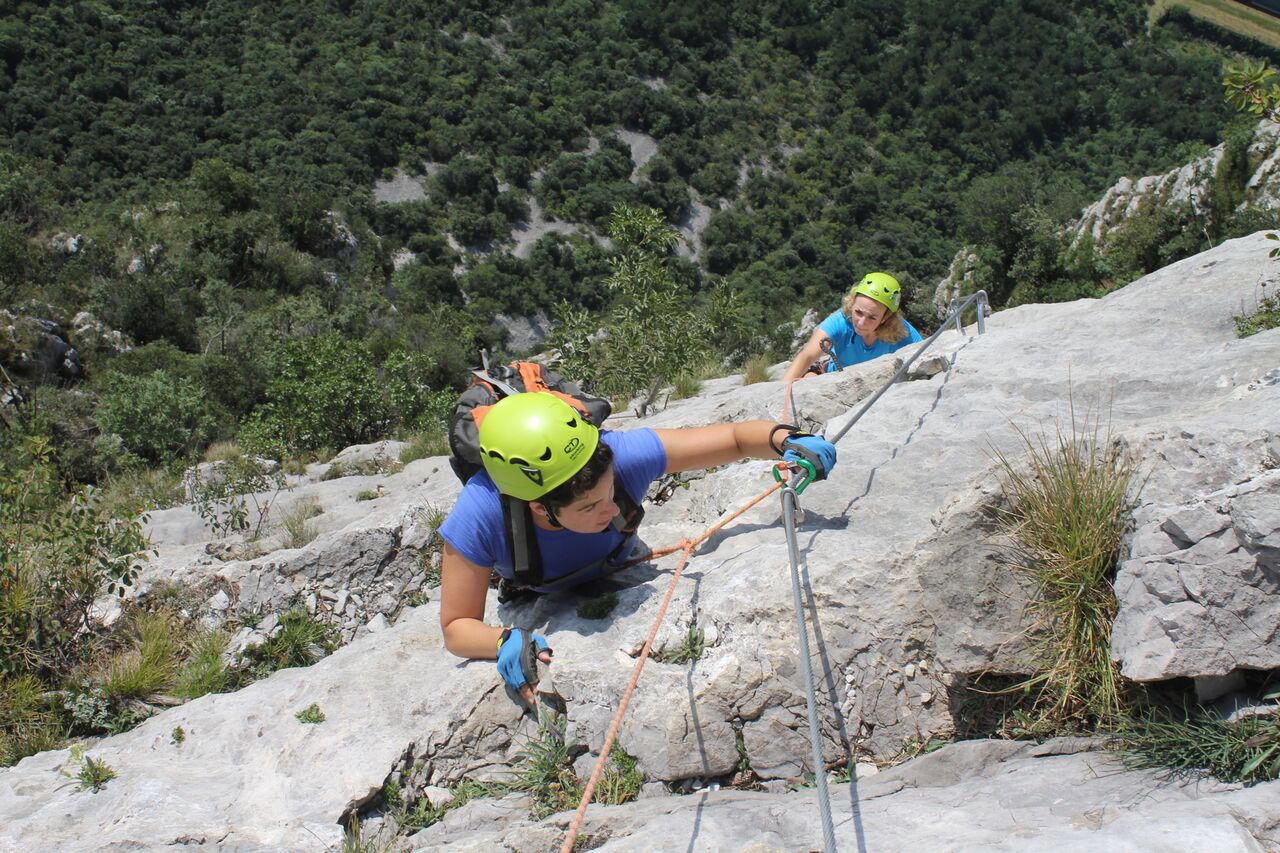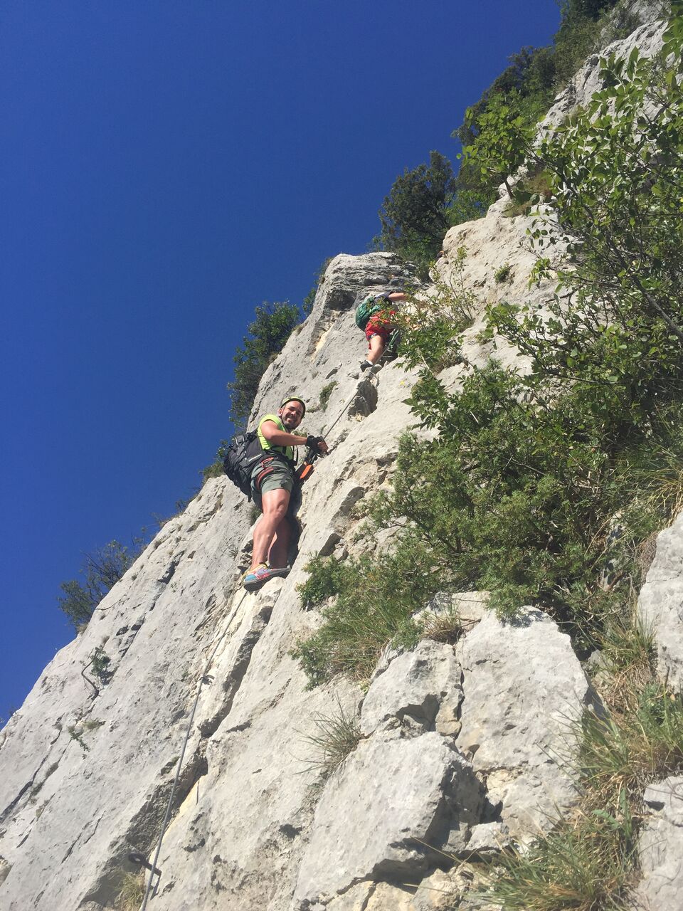 E’ una via attrezzata classificata giustamente come “difficile”, ma quest’aggettivo non significa impossibile o solo per pochi alpinisti provetti. Può invece essere vista come un bel traguardo-obiettivo, dalla nostra Scuola Mmove proposto – per esempio – come uscita finale dei corsi di progressione su itinerari attrezzati. Non mi sentirei in ogni modo di consigliarla come prima via ferrata oppure ad escursionisti che soffrono l’altezza o il vuoto.