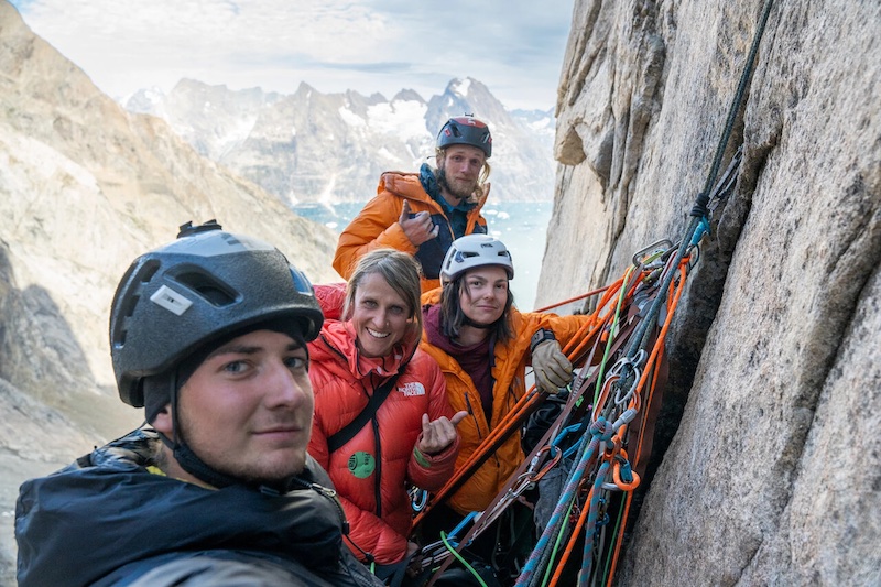 La britannica Fay Manners e la statunitense Michelle Dvorak sono appena tornate da un viaggio, tra kayak e arrampicata, nelle zone più remote della Groenlandia, dove si sono imbattute nell’amico Martin Feistl e nel suo compagno di cordata Felix Bub.