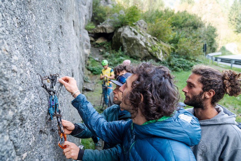 «Conoscere le tecniche di arrampicata artificiale è utile quando si aprono vie o si affrontano pareti con condizioni avverse», aggiunge Luca Ducoli, di Breno (BS). «Io ho avuto la fortuna di scalare con Federica Mingolla e devo dire che le placche della Val di Mello ci hanno dato un bel filo da torcere. Soprattutto per la loro spittatura allegra. Nei giorni successivi invece è stato bellissimo scalare con i miei compagni. Legarsi alla stessa corda è sempre l’occasione migliore per conoscersi e creare quel legame di fiducia fondamentale per poi poter affrontare salite sempre più impegnative».