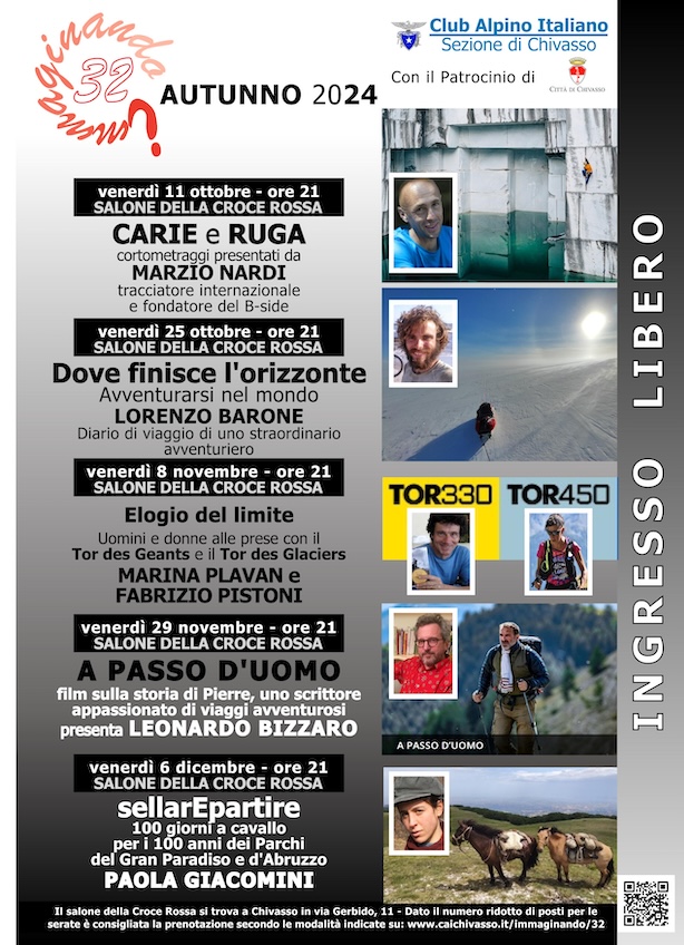 L’11 ottobre, a Chivasso, ritorna la storica rassegna autunnale dedicata alla montagna “Immaginando”. Giunta alla sua trentaduesima edizione, è organizzata dalla locale sezione del CAI. Il programma  delle serate culturali di quest’anno prevede varie tematiche: dall’arrampicata ai cammini, dai viaggi in solitaria e in zone remote agli ultratrail.