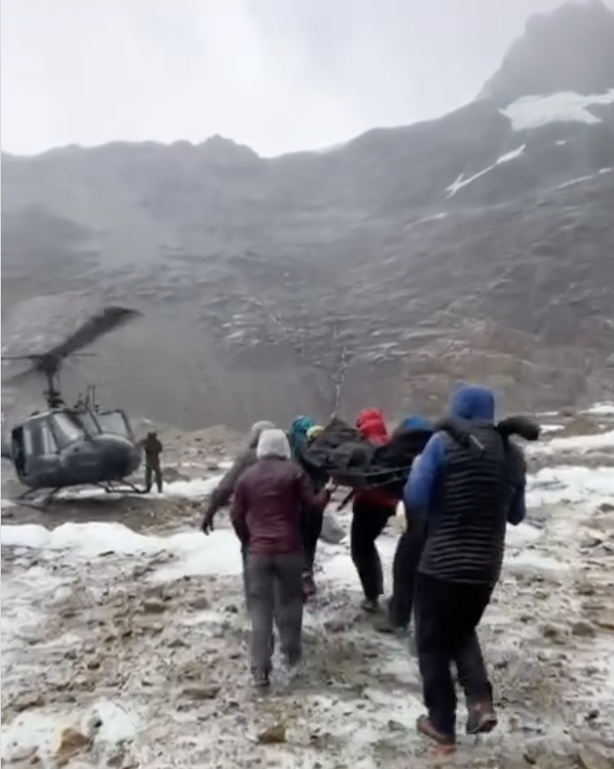 L’elicottero dell’esercito è riuscito ad evacuarlo martedì mattina.
