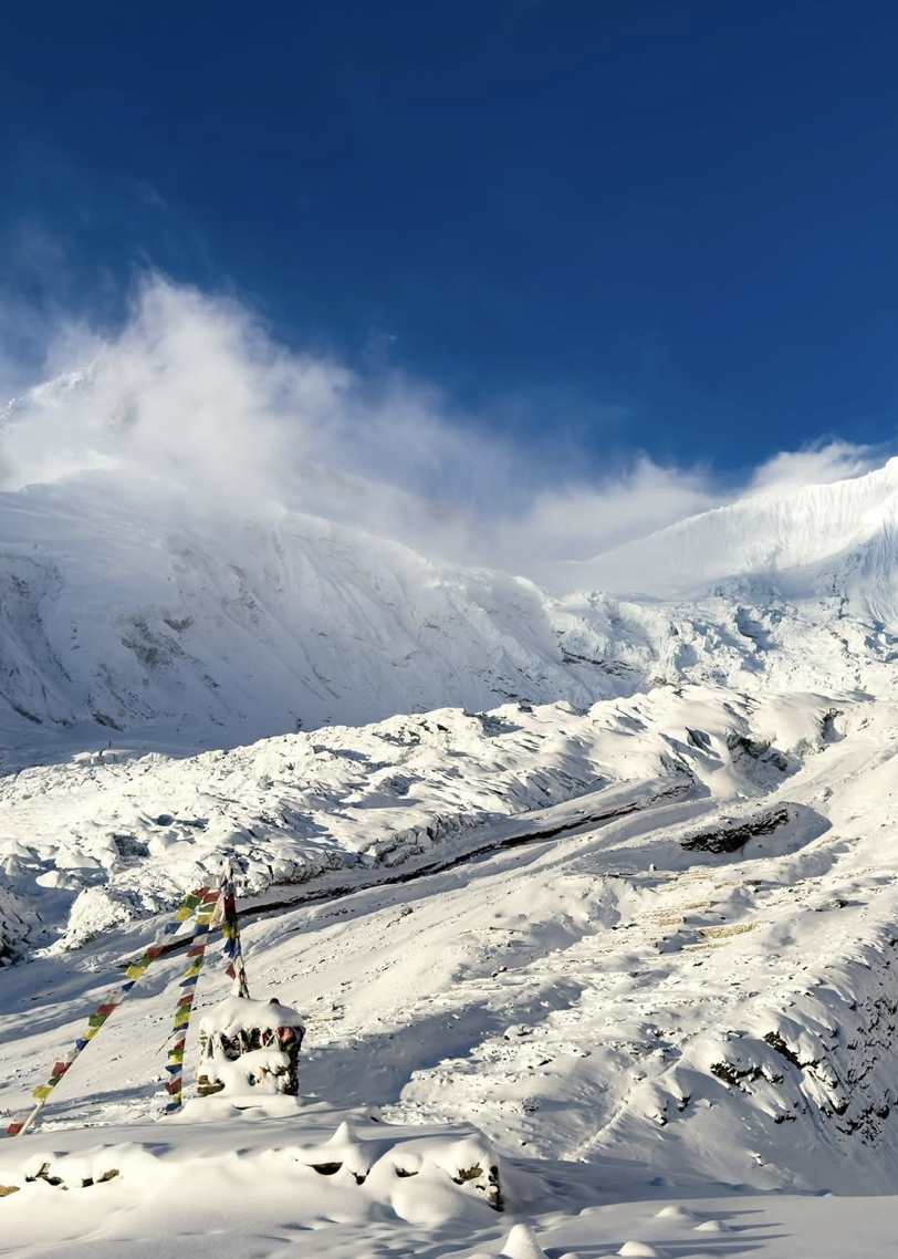 Per Nima Rinji Sherpa, “in montagna, il tempo perde significato, diventa illusione. I giorni sono brevi, le notti si estendono all’infinito e il freddo morde profondo. Ma noi non resistiamo,[e] invece, lo abbracciamo. Ogni momento, non importa quanto dura…”