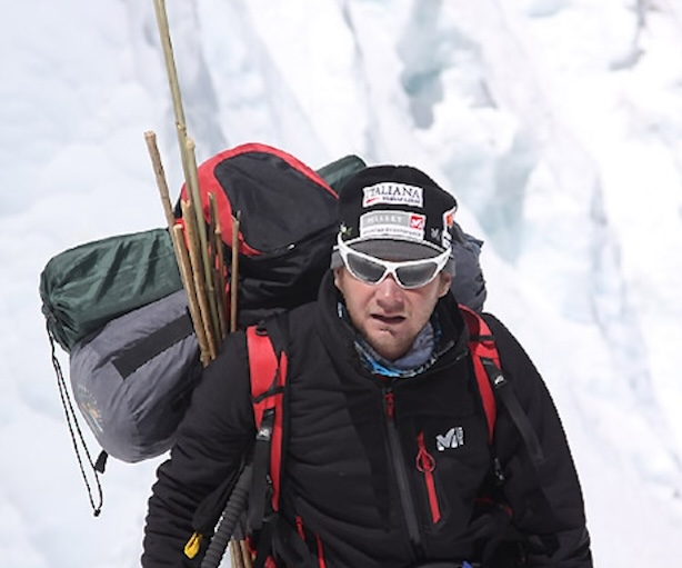 Marco Camandona, guida alpina della Valgrisenche, durante la salita è stato accompagnato da Dante Luboz, che ha abbandonato 150 metri sotto la vetta, e da Abele Blanc, che si è fermato al Campo 2.