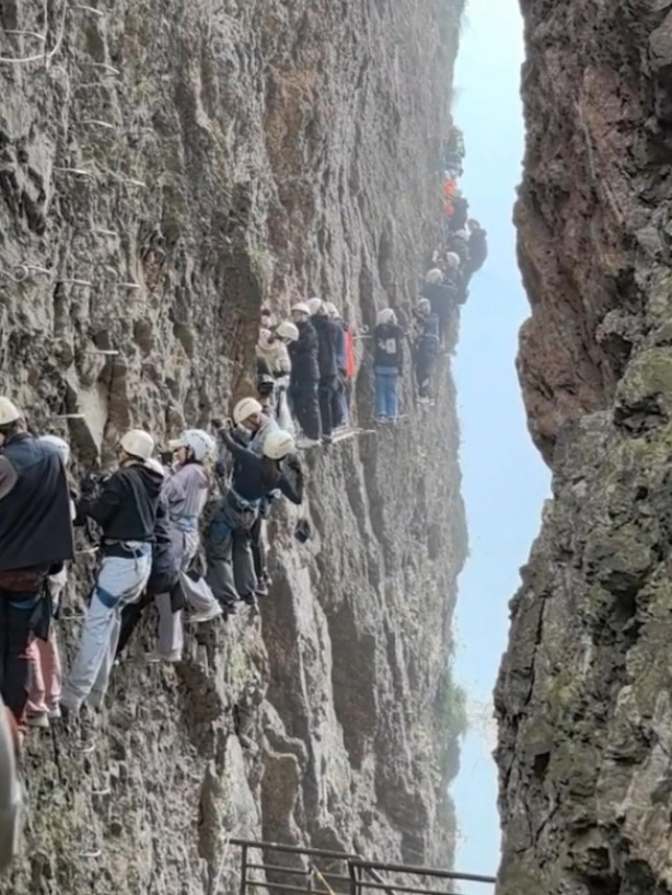 Sabato 4 maggio, centinaia di turisti sono rimasti bloccati per più di un’ora sul Monte Yandang, nella Cina orientale, lungo una via ferrata, senza poter procedere avanti né indietro. Le immagini della lunga fila di escursionisti appesi al cavo metallico, con la ripida parete rocciosa davanti e un profondo strapiombo dietro, in attesa che l’ingorgo defluisse, sono diventate virali sui social cinesi.