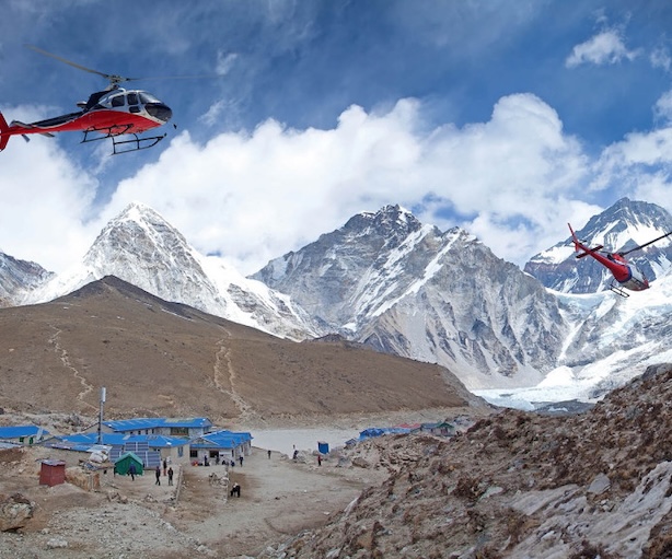 Elicotteri in volo nella valle del Khumbu. Fonte The Kathmandu Post