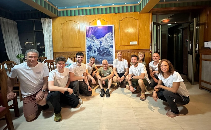Marc Batard, al centro, con il sio team: (da sx) Frédéric , Jamayang, Théo, Kévin, Marc, Noël, Loïc, Nathalie, Sylvain e la figlia Cathy, aprile 2024. Fonte facebook
