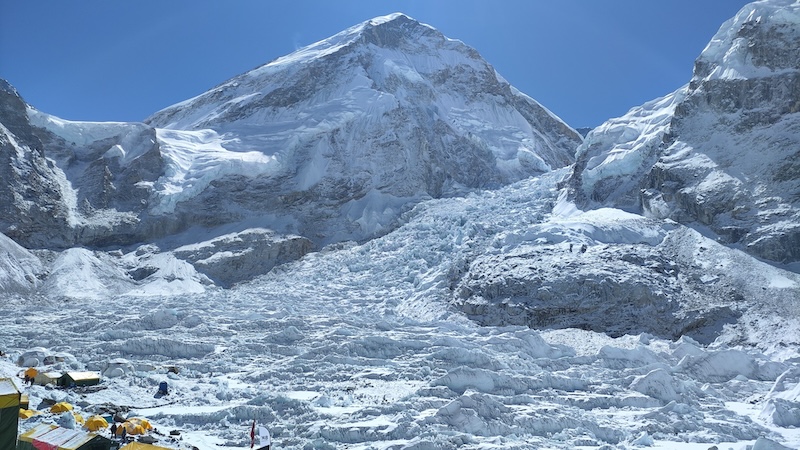 Domenica scorsa, la via attraverso la Cascata di Ghiaccio del Khumbu è stata chiusa a causa di un crollo, ma gli “IceFall Doctors” hanno prontamente risolto il problema sistemando nuove scale sul percorso.