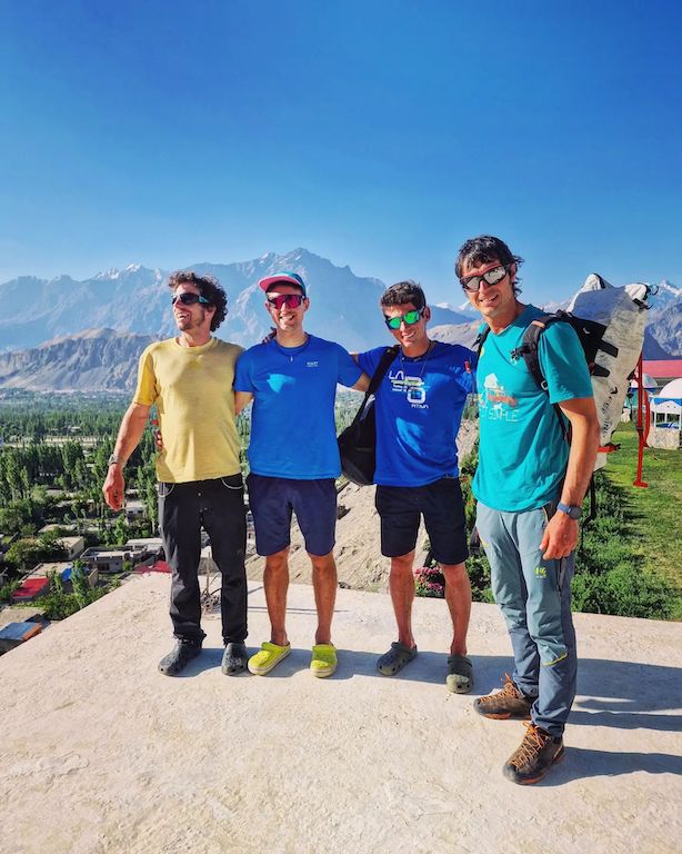 Silvan Schüpbach, Symon Welfringer, Francois Cazzanelli e Matteo Della Bordella, spedizione all’Ogre, estate 2023. Fonte facebook Della Bordella