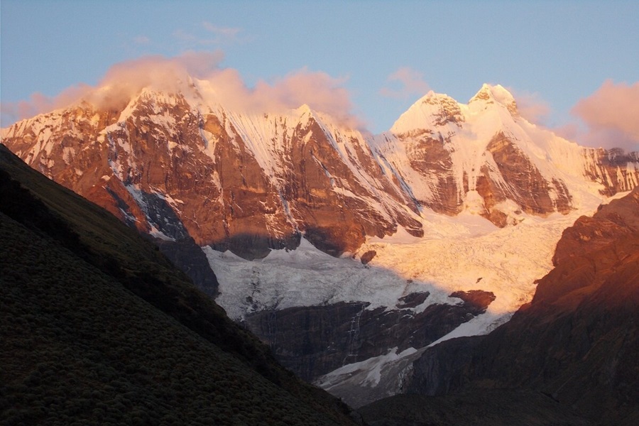 Sveglia alle due del mattino. Dopo una rapida colazione ci mettiamo in marcia per raggiungere, dopo due ore, il ghiacciaio dove ci attrezziamo con corde, rampini, imbracature e tutto ciò che serve per l’ascesa. Una volta in cordata, saliamo per circa un’ora e mezza fino alla cima del Diablo Mudo, tra le cime innevate di Huacrish, Rasac, Yerupaja. Ripartiamo poco dopo per raggiungere l’accampamento di Jahuacocha, attraverso la Valle di Huacrish.