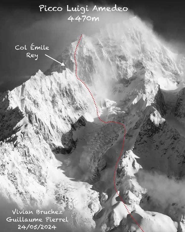Il 24 giugno i francesi Vivian Bruchez e Guillaume Pierrel hanno effettuato la prima discesa integrale con gli sci del Picco Luigi Amedeo (4.470 m), sul versante italiano del Massiccio del Monte Bianco.