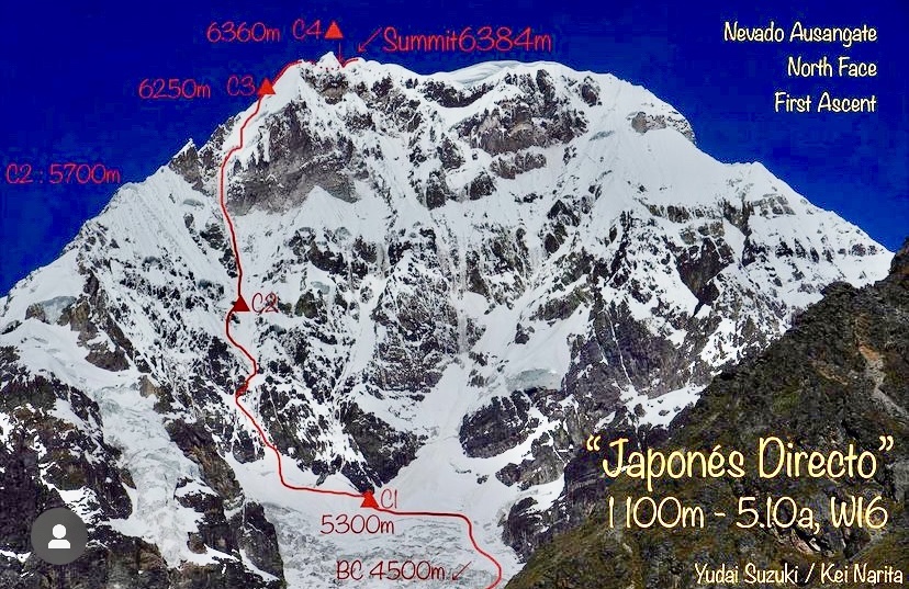 I giapponesi Yudai Suzuki e Kei Narita hanno effettuato la prima salita della parete Nord del Nevado Ausangate (6.384 m) nelle Ande peruviane.