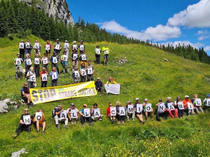 Solo l’idea che soldi dei contribuenti vengano spesi per una strada priva di senso e non per servizi essenziali necessari nei fondovalle per attrarre turismo e residenti è la prova di come si sia lontani da una lungimirante politica per lo sviluppo sostenibile della montagna. Regione, Comunità di Montagna e i sindaci erano stati invitati alla camminata anche per comprendere dai geologi, dottori forestali e tecnici presenti i punti deboli del progetto. Nessuno si è presentato così come ad oggi nessuna risposta è giunta all’istanza in autotutela notificata ancora il 18 gennaio 2023. Presenti invece i carabinieri e Don Pellarini che hanno salutato il gruppo alla partenza anche con una preghiera di papa Francesco sull’ambiente e sul suo valore. Il silenzio da parte delle istituzioni e degli uffici tecnici non può che essere interpretata come ulteriore prova della difficoltà nel trovare argomenti validi a sostegno del progetto. Si confida comunque che ci possa essere un’apertura così da evitare altre iniziative legali che sarebbero antitetiche rispetto alla volontà di trovare una soluzione ragionevole.