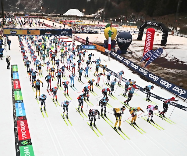 In centinaia si sono scatenati anche nella 20.a Marcialonga Light di 45 km che ha visto primeggiare Tommaso Dellagiacoma e Anna Giordan davanti alla figlia d’arte Anna Aukland.