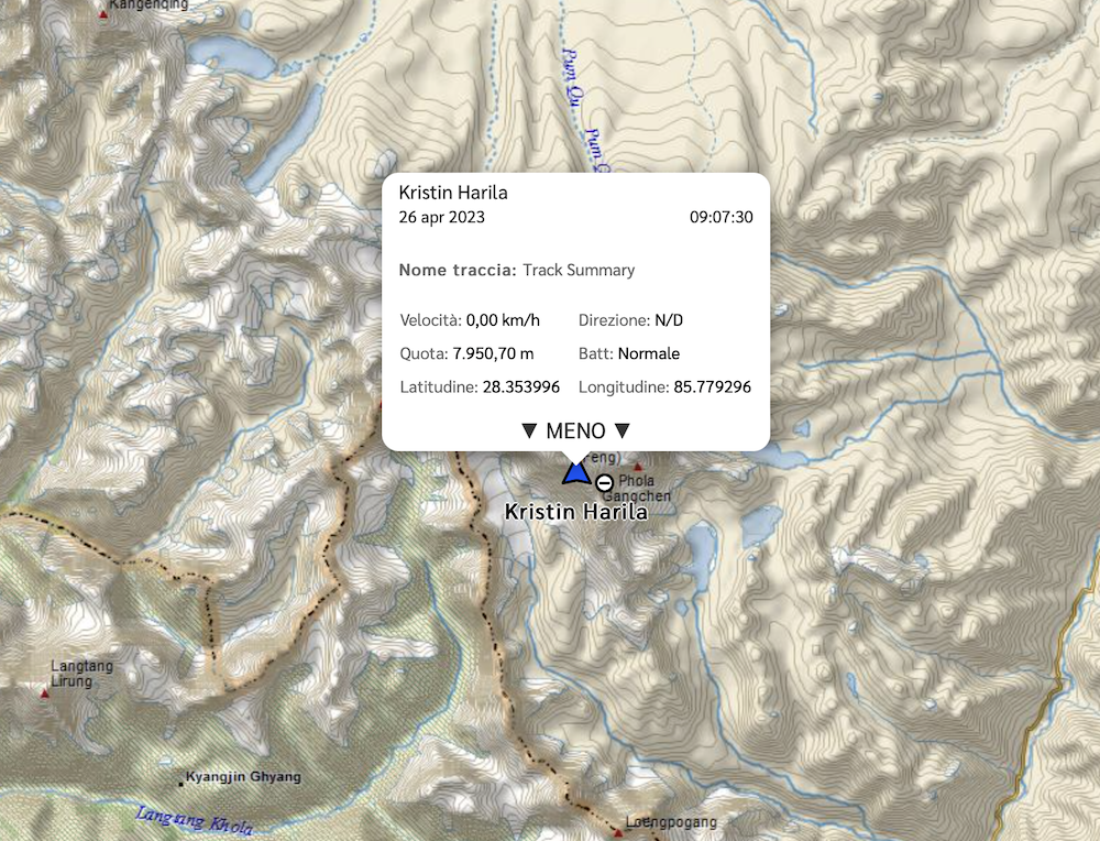 L’ultima rilevazione fornita dal GPS di Kristin Harila, segnalava la norvegese a oltre 7.950 metri di quota.