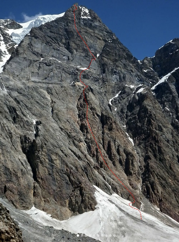 Parete Ovest del Rottalhorn (3.971 m), Alpi bernesi, ottobre 2023: la linea tracciata da Silvan Schüpbach, Peter von Känel e Rolf Zurbrügg. Fonte instagram S.Schüpbach