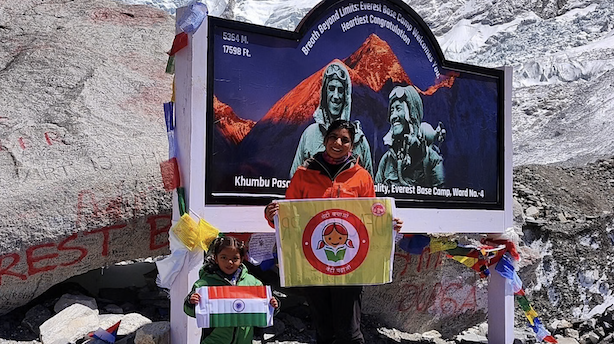 Siddhi Mishra con sua madre al CB dell’Everest, marzo 2024. ©X/@BhawnaDehariya
