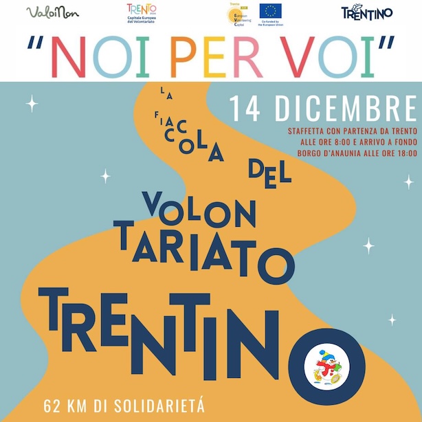 Saranno trecento, in rappresentanza di nove comuni, i volontari che sabato 14 dicembre, daranno vita alla staffetta «Noi per voi», un evento ideato dal comitato organizzatore de La Ciaspolada per celebrare la fine di un anno nel quale la città di Trento, e con essa tutta la provincia, è stata Capitale europea del volontariato. L’idea consiste nel costruire un’ideale catena umana, composta dai membri di decine di associazioni trentine operanti in ambito sportivo, culturale e sociale, che nel corso della giornata unirà il capoluogo a Fondo, trasportando una fiaccola lungo l’asta dell’Adige e la Val di Non.