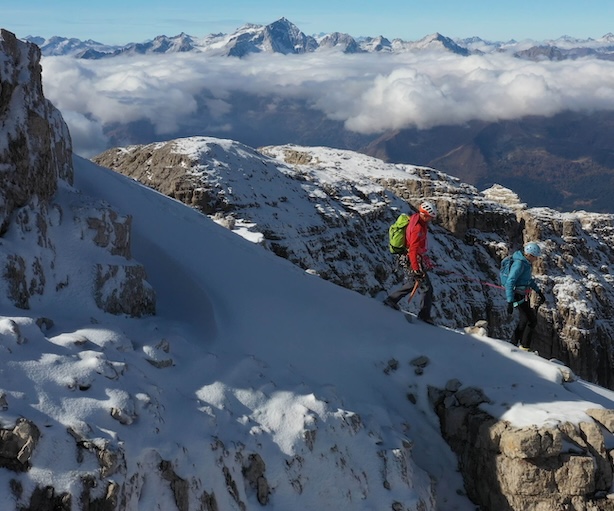 Progressione in corda corta su cresta con la Guida Gianni Canale – ©Busaccavideo Fonte: Collegio Guide Alpine Italiane