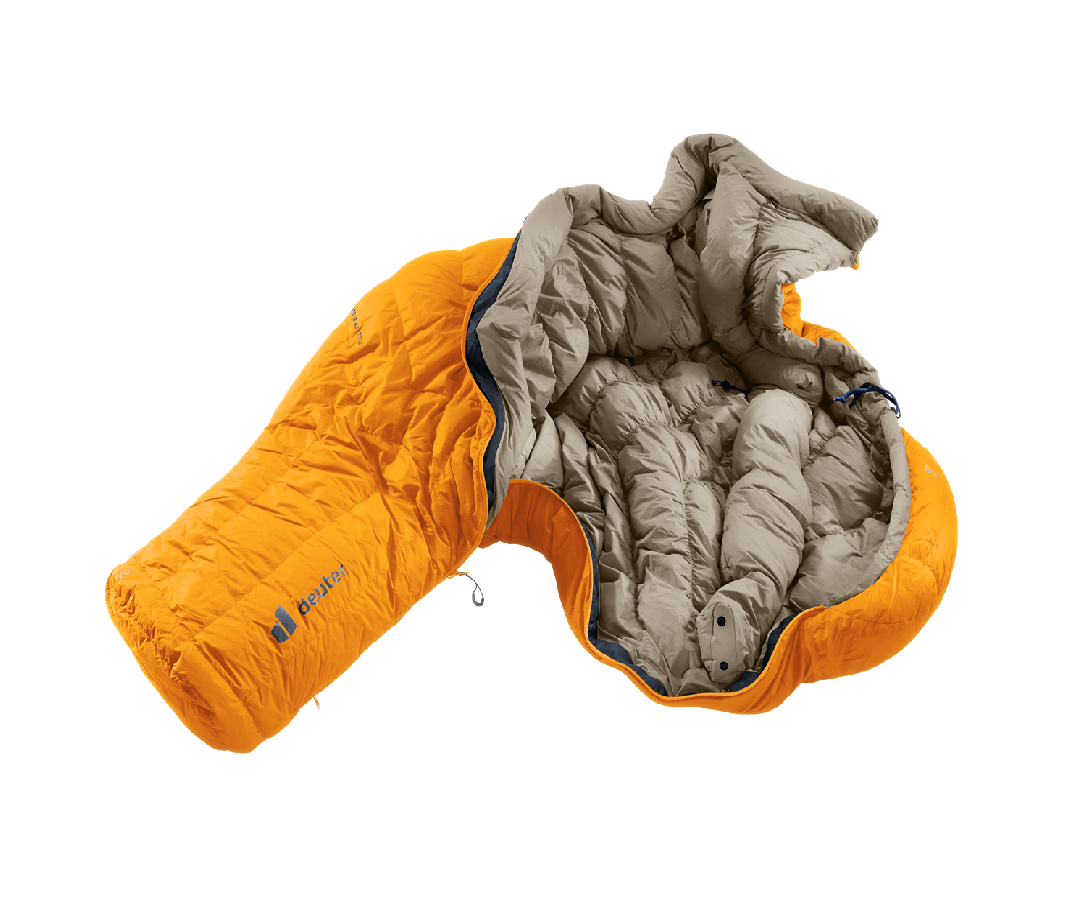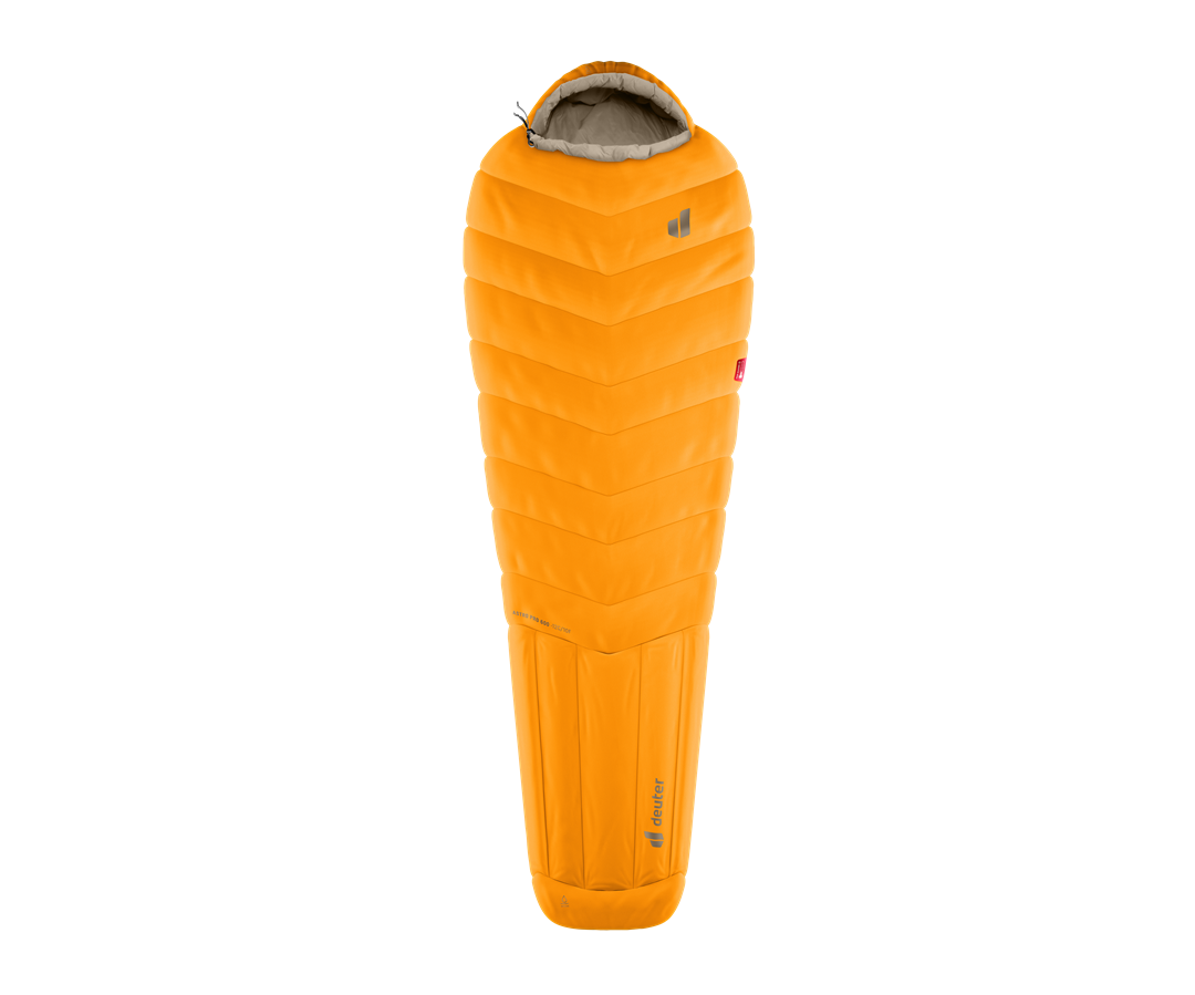 Grazie al cappuccio ThermoHood, alla costruzione PeakDesign nella parte superiore e alla segmentazione PowerBox nella zona inferiore, la piuma rimane distribuita in modo uniforme, garantendo calore costante nelle zone più sensibili. La struttura tridimensionale della zona piedi assicura inoltre maggiore libertà di movimento e comfort.