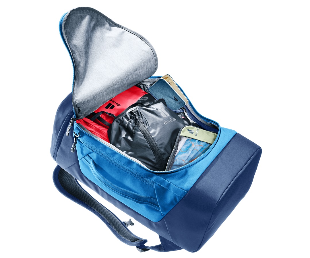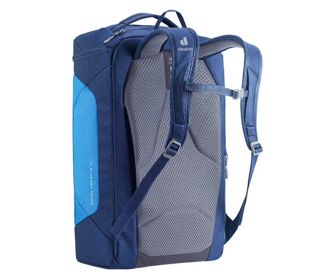 Il Duffel Pro Pack è dotato del sistema dorsale Deuter Contact con spallacci imbottiti e maniglie per il trasporto. Dispone di una fascia sul retro che permette di fissarlo al manico estraibile di una valigia o di un trolley. Numerose tasche, scomparti e un’unità organizer rimovibile mantengono il contenuto ben organizzato e offrono spazio sufficiente anche per chi viaggia con un solo bagaglio. Un unico punto di fissaggio per il lucchetto permette di mettere in sicurezza tutte le cerniere. Realizzato con materiali robusti e resistenti, dotato di base stabile e dimensioni compatibili con il bagaglio a mano, è perfetto per viaggi in autobus, treno o aereo.