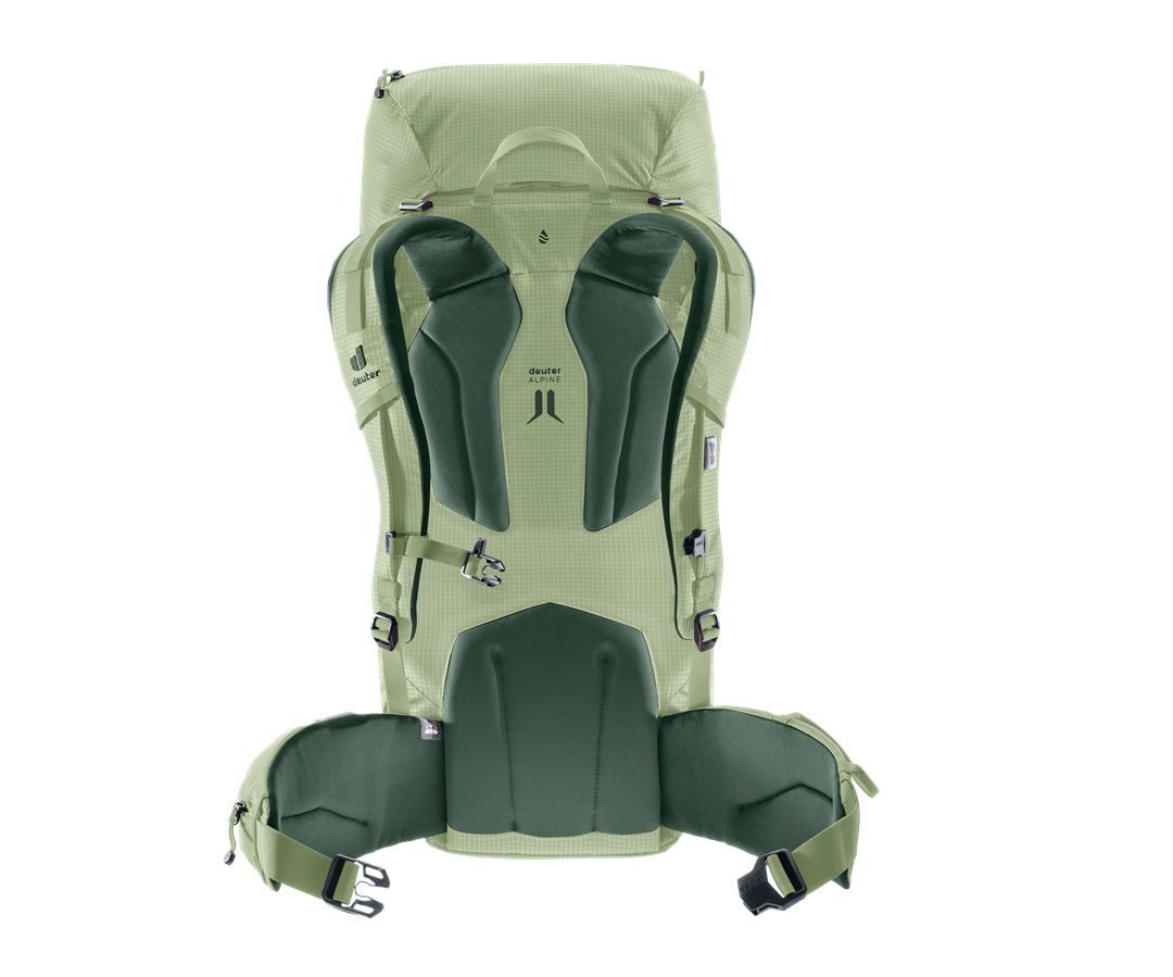 Grazie alla dotazione alpinistica e ai materiali robusti, questo zaino offre tutto ciò di cui gli alpinisti hanno bisogno. Le alette lombari removibili e la costruzione del cappuccio rimovibile, insieme alle asole porta-materiale e di fissaggio, al porta piccozza su entrambi i lati, al fissaggio laterale per sci, al porta-corda, alla rete portacasco e all’espansione di volume, garantiscono grande versatilità.