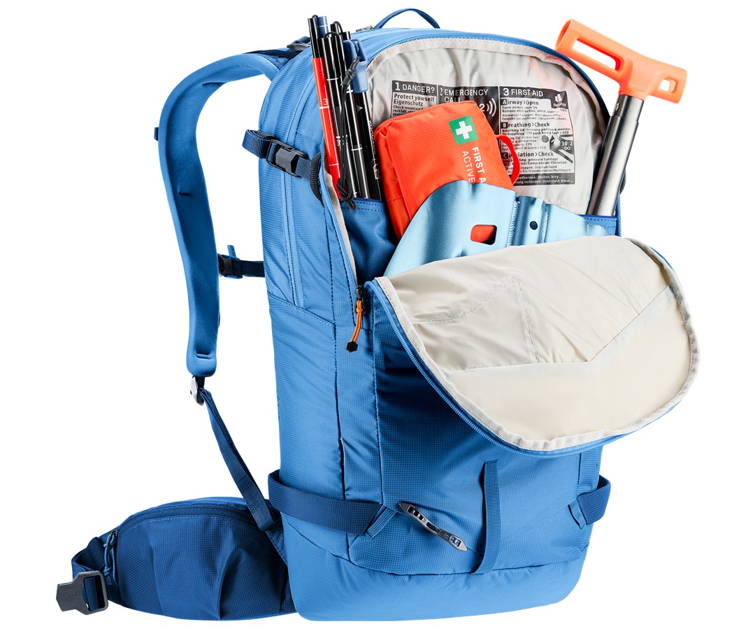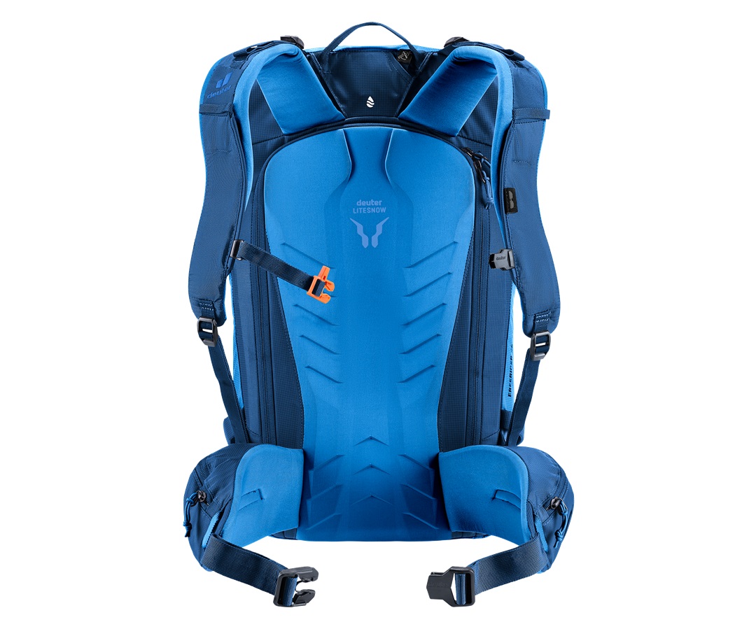 Il sistema dorsale LiteSnow di Deuter garantisce massimo comfort con il minimo peso. Il design innovativo è resistente a neve e umidità, assicurando comodità anche durante lunghe giornate sulla neve. Questo zaino da sci unisce leggerezza e funzionalità: l’ampia apertura posteriore permette di accedere rapidamente al comparto principale senza dover rimuovere sci, snowboard o attrezzatura da alpinismo dalla parte frontale. Inoltre, il vano dedicato all’equipaggiamento per valanghe consente di intervenire tempestivamente in caso di emergenza.