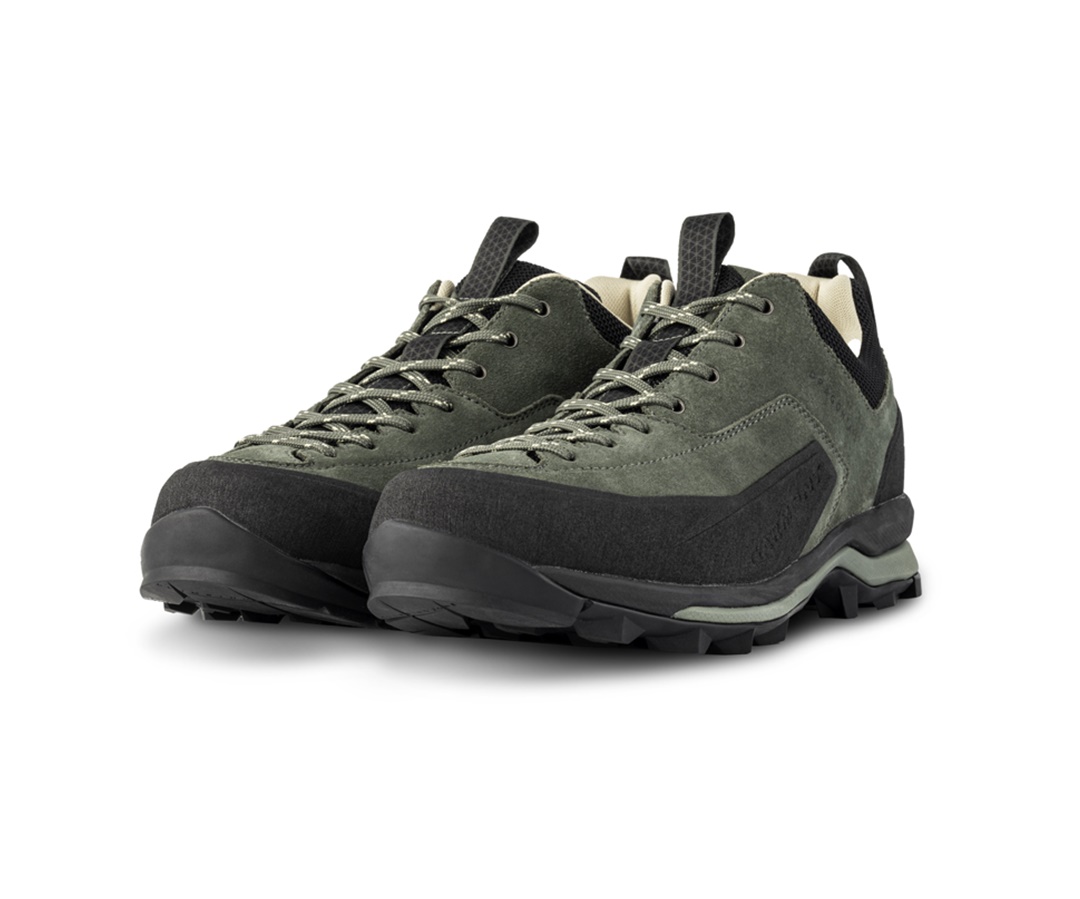 La scarpa DRAGONTAIL, leggera e molto traspirante, è ideale per il trekking leggero e il tempo libero di tutti i giorni. Idrorepellente per una leggera protezione contro sfavorevoli condizioni climatiche, la tomaia in pelle scamosciata da 1.6 mm è dotata di inserti in EFoam ultraleggeri sul puntale e tallone per una maggiore protezione. EFoam è un’alternativa innovativa alla gomma che garantisce non solo ottime prestazioni meccaniche, ma anche una notevole elasticità e flessibilità. Non invecchia nel tempo mantenendo inalterate tutte le sue caratteristiche originali e non contiene inquinanti come DMF o PVC.