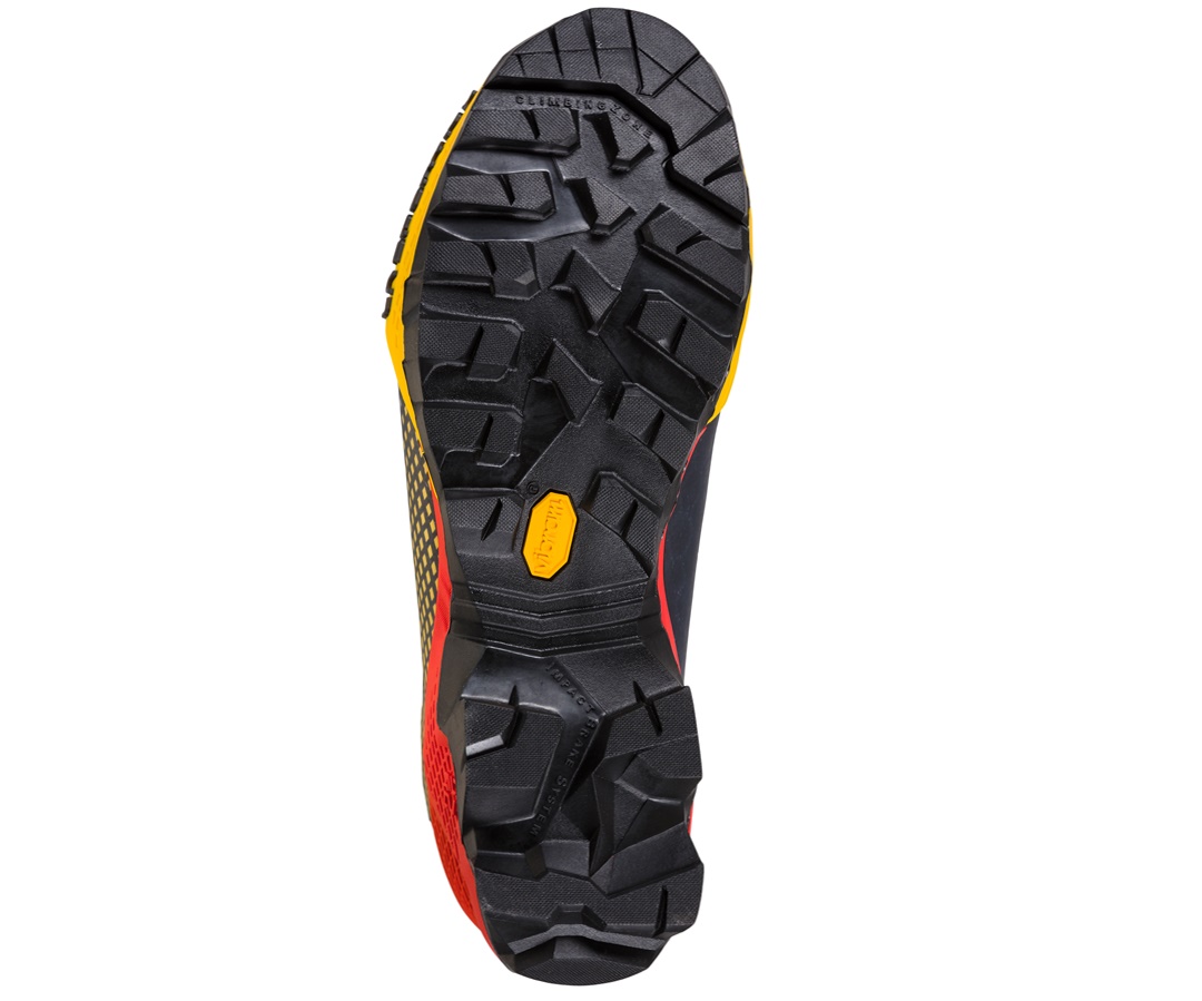 L’intersuola è semi-ramponabile per utilizzi con ramponcini in caso di ghiaccio o neve, suola con battistrada Vibram® SpringLug Tech con tasselli Impact Brake System per una maggior adattabilità alle superfici dure della roccia. L’alpinismo in perfetta armonia.