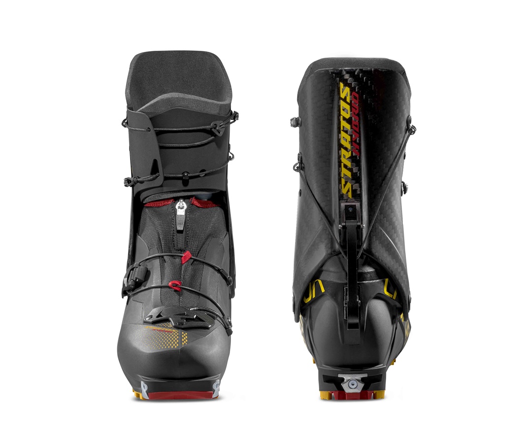 Stratos Hybrid è lo scarpone dedicato a garisti evoluti e giovani promesse dello scialpinismo. In esso coesiste il meglio dei due mondi: lo scafo in materiale composito Grilamid Bio Based LF Carbon™ e il gambale fullcarbon di derivazione Stratos VI realizzato artigianalmente a Ziano di Fiemme. Meccanismo ski-walk e sistema di chiusura superiore sono mutuati direttamente dal top di gamma Stratos VI, i cambi assetto non sono mai stati così veloci ed efficaci.