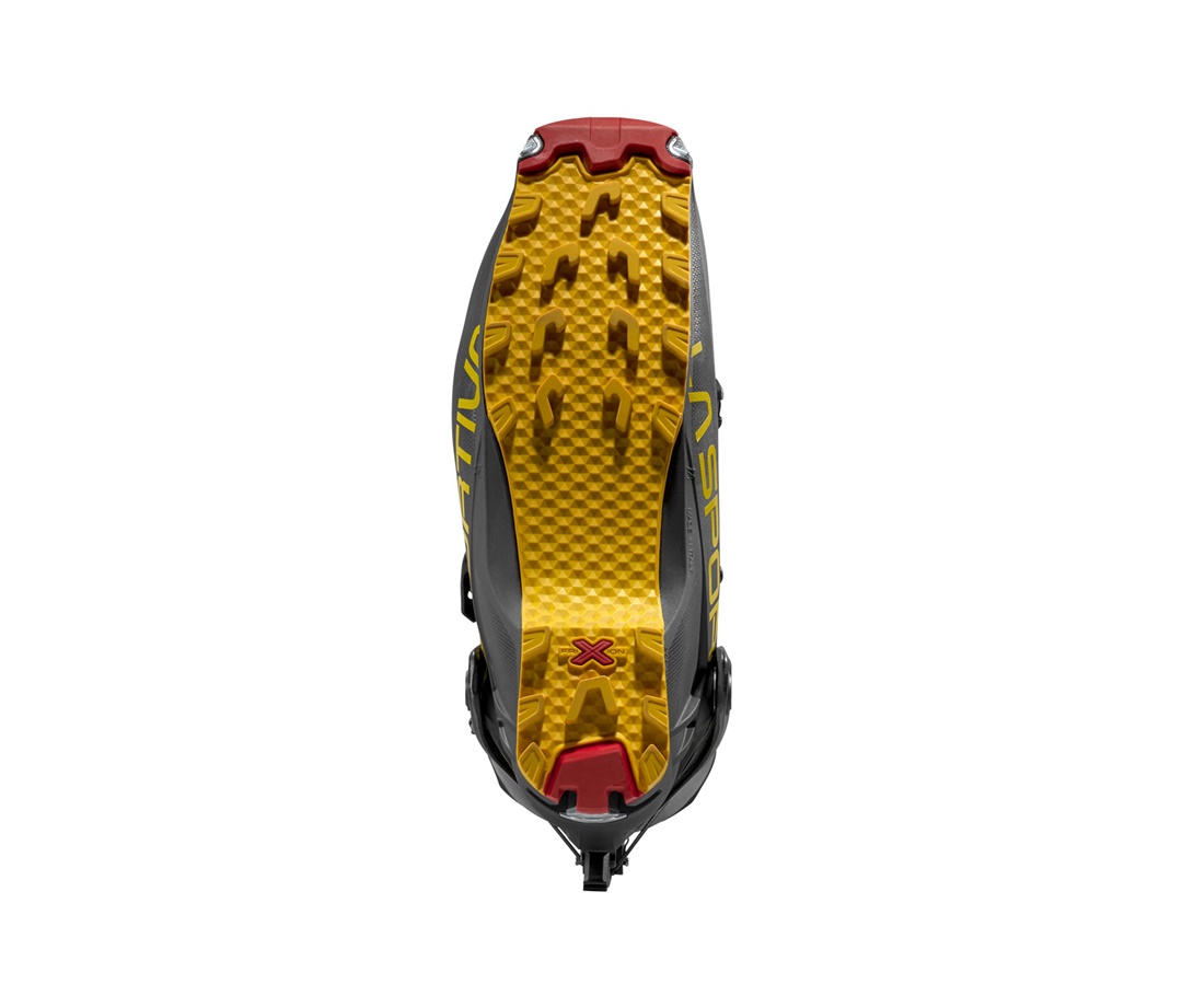 La suola FriXion Wave Race™ e i terrazzamenti anteriore e posteriore rispettano la normativa IFSM. È infine dotato di una ghetta integrata che contrasta l’ingresso della neve, garantendo protezione anche durante gli allenamenti o grande course alpinistiche.