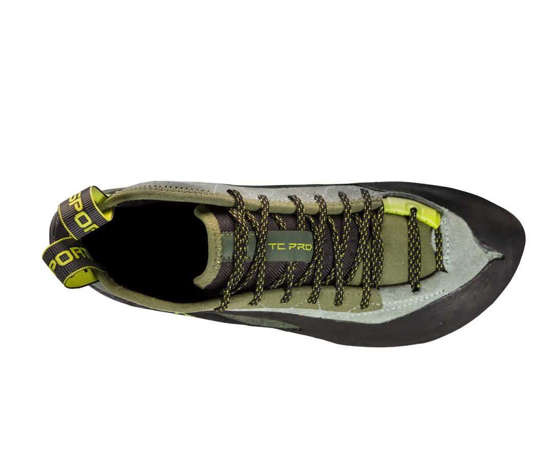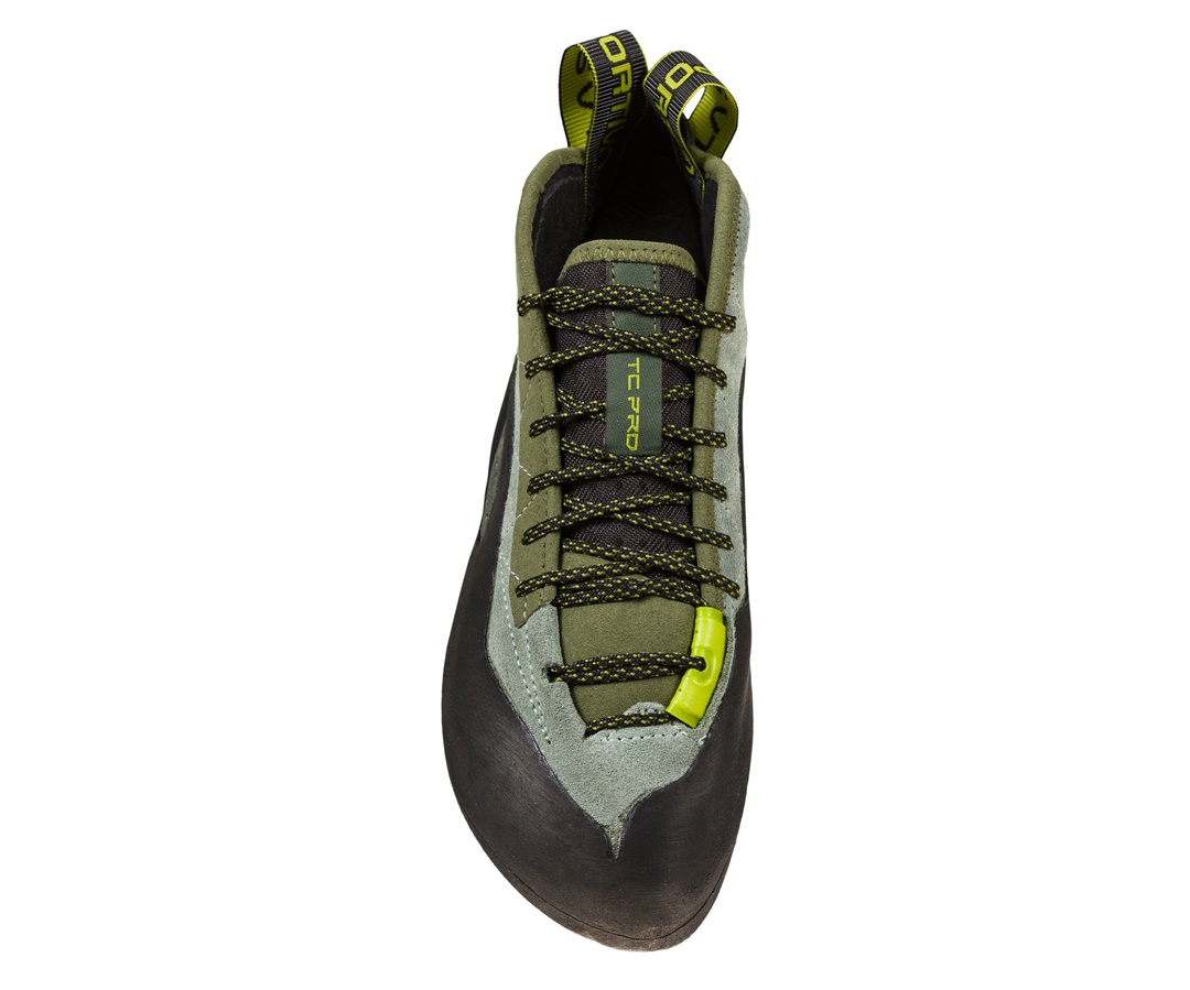 Scarpetta studiata per utilizzi su vie lunghe in montagna e fessure: novità assoluta sul mercato del climbing per caratteristiche tecniche! TC Pro garantisce il massimo comfort anche dopo molte ore di utilizzo grazie alla morbida imbottitura interna nella zona dei malleoli e nella zona anteriore. Peculiarità del modello: il taglio alto della tomaia, concepito per proteggere la caviglia dagli sfregamenti nelle fessure. Il bordo anteriore in gomma fornisce ulteriore protezione nelle fessure mentre il sistema di allacciatura in punta è appositamente studiato per preservare i lacci dallo sfregamento contro la roccia. Tomaia e linguella sono estremamente traspiranti per aumentare il comfort interno. TC Pro adotta inoltre il brevetto P3, concepito per mantenere l’arcuatura della scarpetta nel tempo. La suola, realizzata con una nuova mescola Vibram®, riduce la deformazione sulle piccole tacchette e sugli appoggi taglienti.