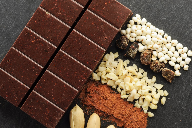 Barretta al cioccolato con mandorle, albicocche e miglio soffiato