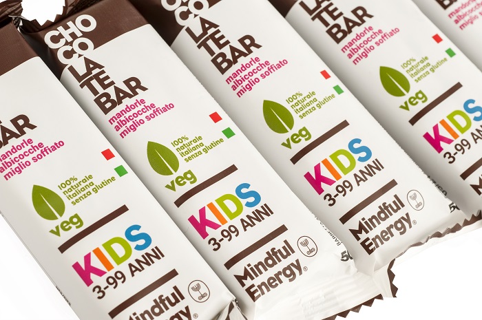 Le barrette Mindful Energy KIDS sono pensate per soddisfare le esigenze dei bambini (a partire dai 3-4 anni) e dei ragazzi, nel delicato momento della merenda e ogni qualvolta abbiano necessità di rifornirsi di energie. Bilanciate da un punto di vista nutrizionale, contengono ingredienti di qualità, hanno il gusto del cioccolato fondente e della crema di arachidi bio e sono arricchite di albicocche, miglio soffiato e canapa. Ideali come snack per tutte le età dai 3 ai 99 anni!
